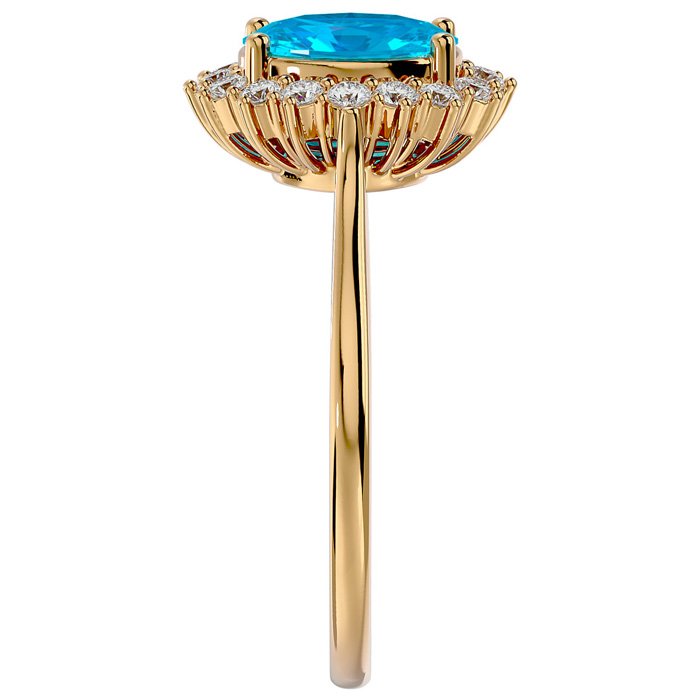 1 3/4 Carat Oval Shape Blue Topaz and Halo Diamond Ring In 14 Karat Yellow Gold