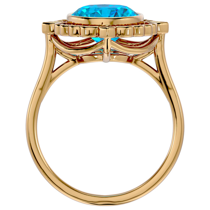 1 3/4 Carat Oval Shape Blue Topaz and Halo Diamond Ring In 14 Karat Yellow Gold