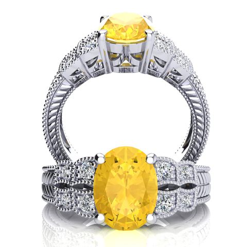 1 3/4 Carat Oval Shape Citrine and Diamond Ring In 10 Karat White Gold