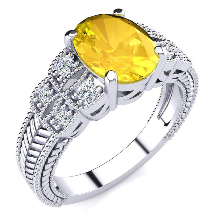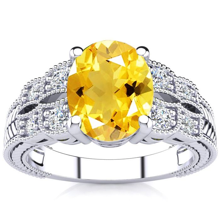 1 3/4 Carat Oval Shape Citrine and Diamond Ring In 10 Karat White Gold