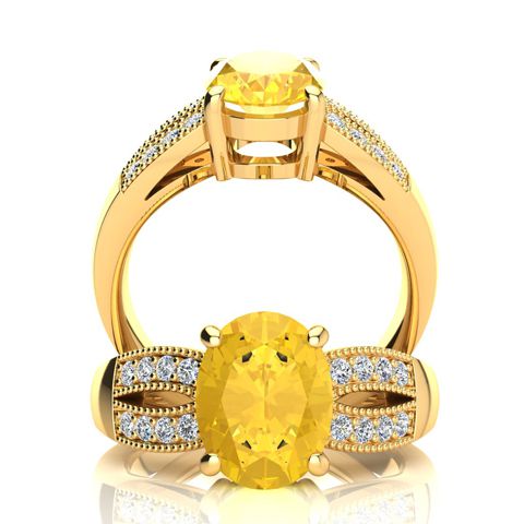 1 3/4 Carat Oval Shape Citrine and Diamond Ring In 14 Karat Yellow Gold