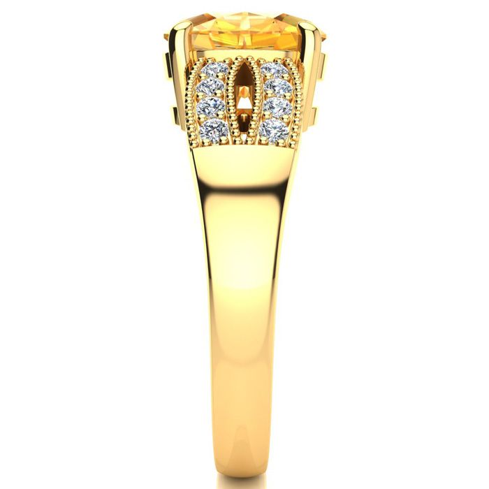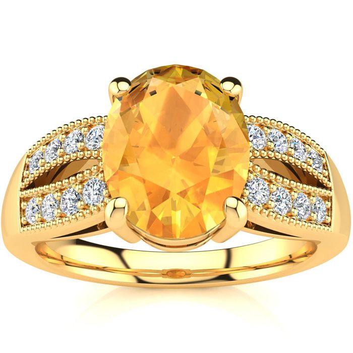 1 3/4 Carat Oval Shape Citrine and Diamond Ring In 14 Karat Yellow Gold