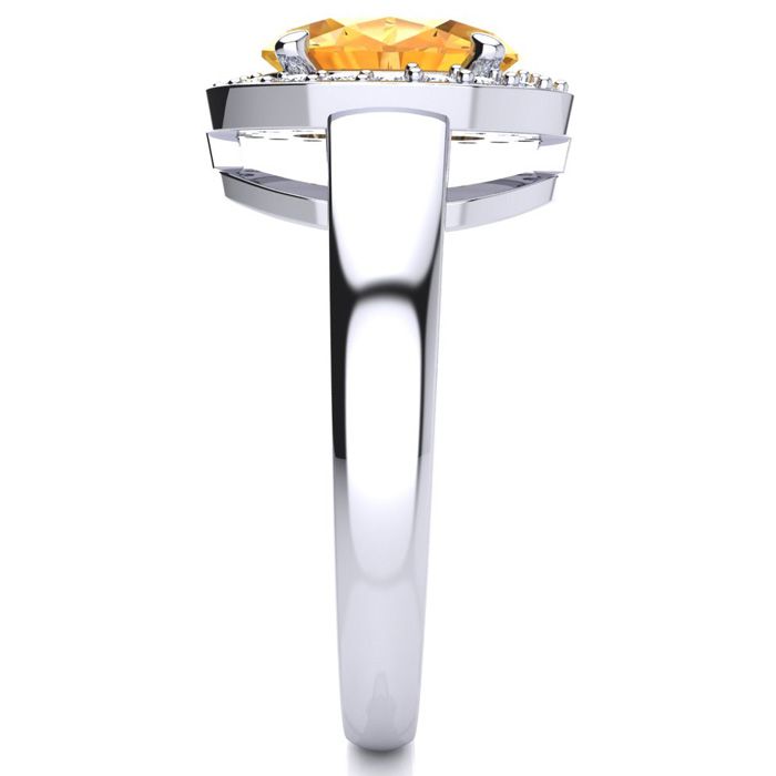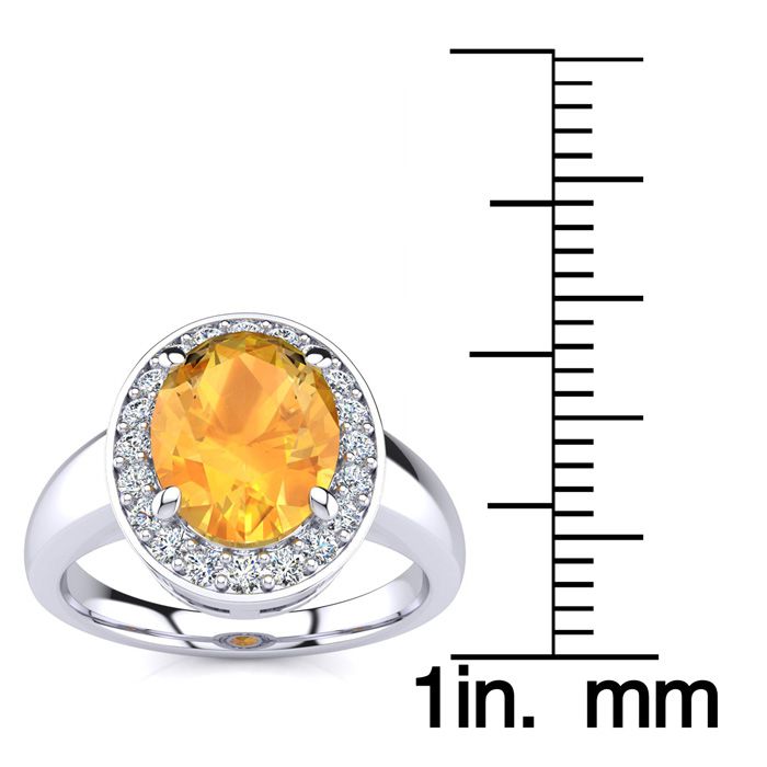 1 3/4 Carat Oval Shape Citrine and Halo Diamond Ring In 14 Karat White Gold