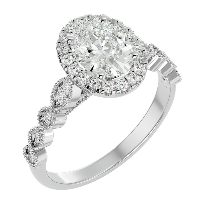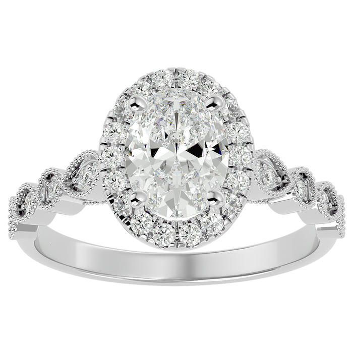 1 3/4 Carat Oval Shape Diamond Engagement Ring In 14 Karat White Gold