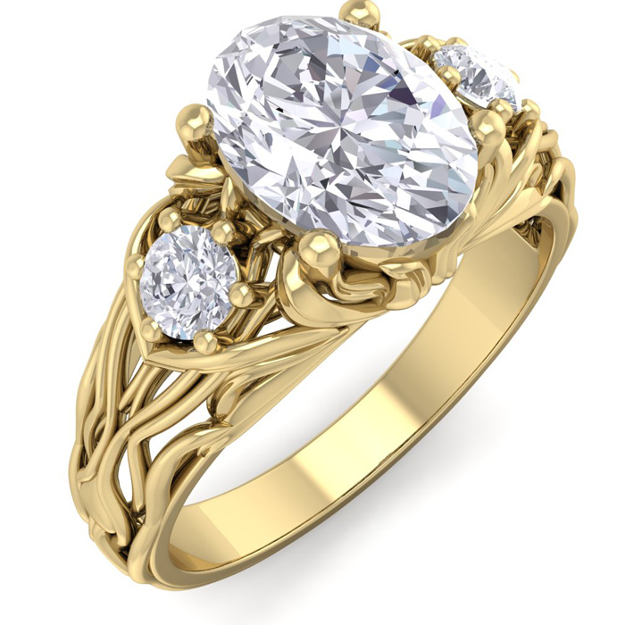 1 3/4 Carat Natural Oval Shape Diamond Intricate Vine Engagement Ring In 14 Karat Yellow Gold