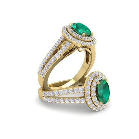 1 3/4 Carat Oval Shape Emerald and Halo Diamond Ring In 14 Karat Yellow Gold