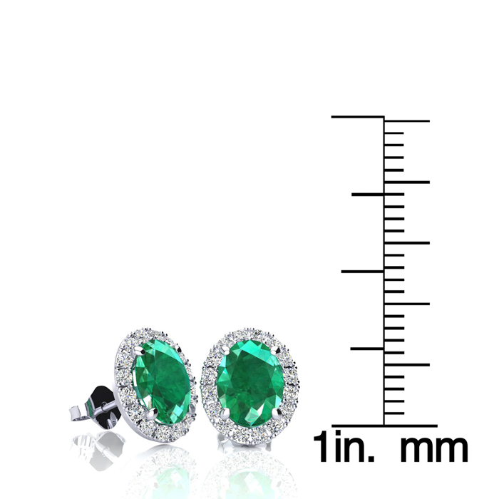 1 3/4 Carat Oval Shape Emerald and Halo Diamond Stud Earrings In 14 Karat White Gold