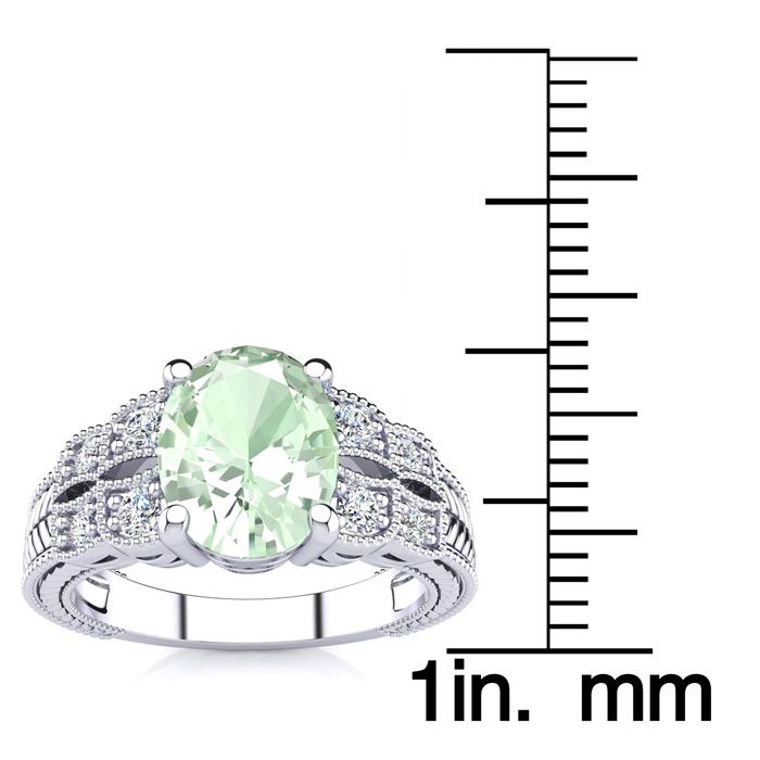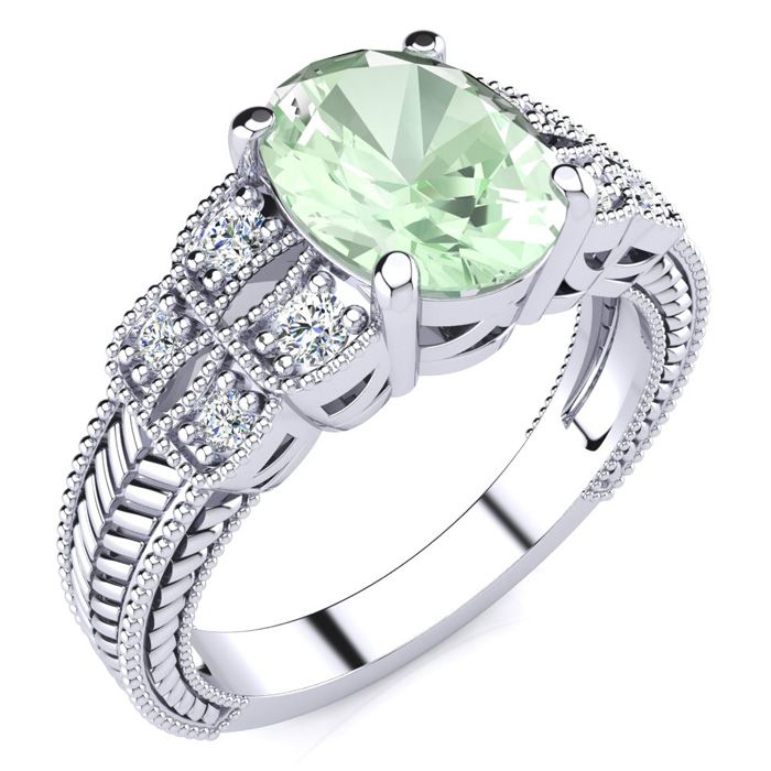 1 3/4 Carat Oval Shape Green Amethyst and Diamond Ring In 10 Karat White Gold