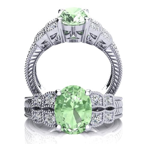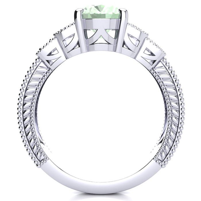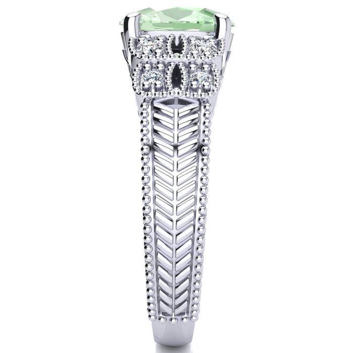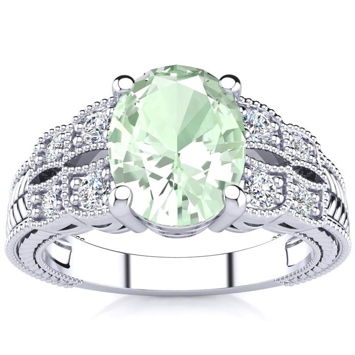 1 3/4 Carat Oval Shape Green Amethyst and Diamond Ring In 10 Karat White Gold