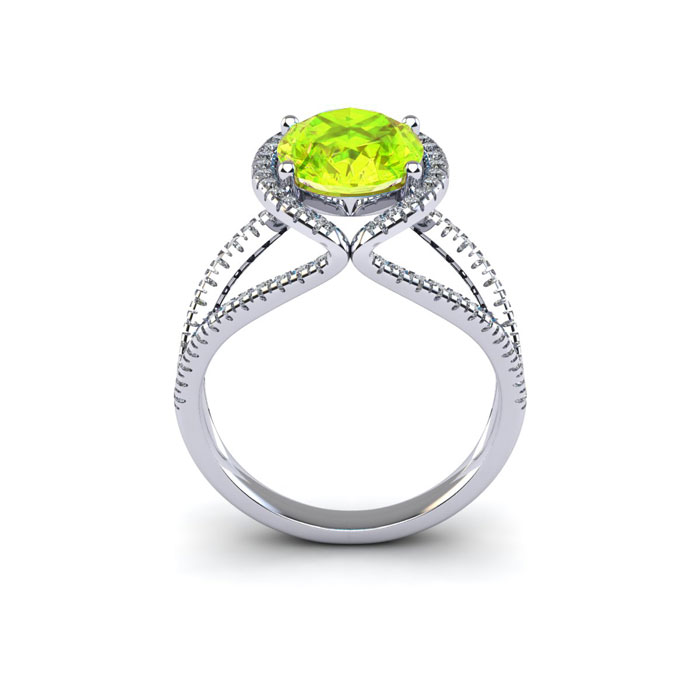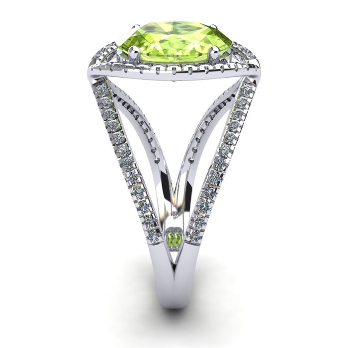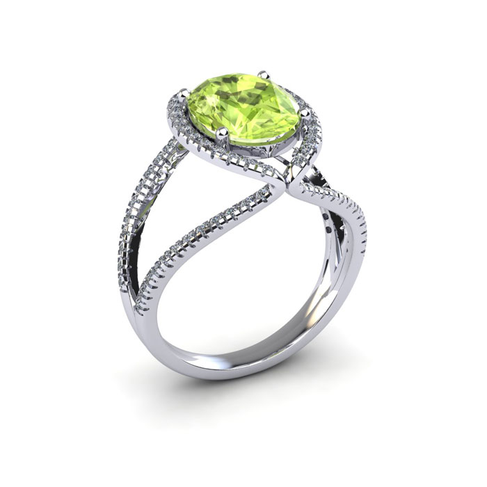 Retrograde Birthstones™ 1 3/4 Carat Oval Shape Peridot and Halo Diamond Ring In 14 Karat White Gold
