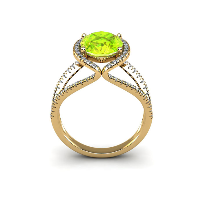 Retrograde Birthstones™ 1 3/4 Carat Oval Shape Peridot and Halo Diamond Ring In 14 Karat Yellow Gold