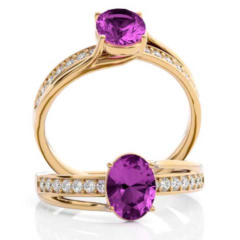 1 3/4 Carat Oval Shape Pink Topaz and Diamond Ring In 14 Karat Yellow Gold