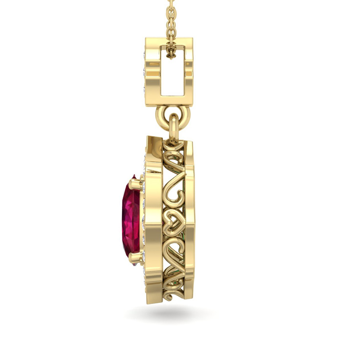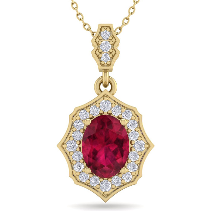 Retrograde Birthstones™ 1 3/4 Carat Oval Shape Ruby and Diamond Necklace In 14 Karat Yellow Gold, 18 Inches