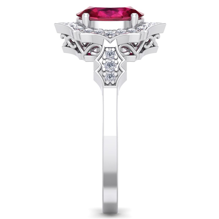 1 3/4 Carat Oval Shape Ruby and Diamond Ring In 14 Karat White Gold