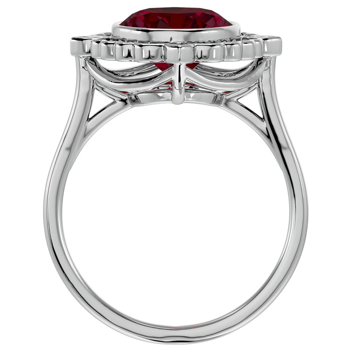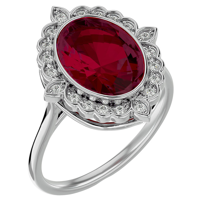 1 3/4 Carat Oval Shape Ruby and Halo Diamond Ring In 14 Karat White Gold