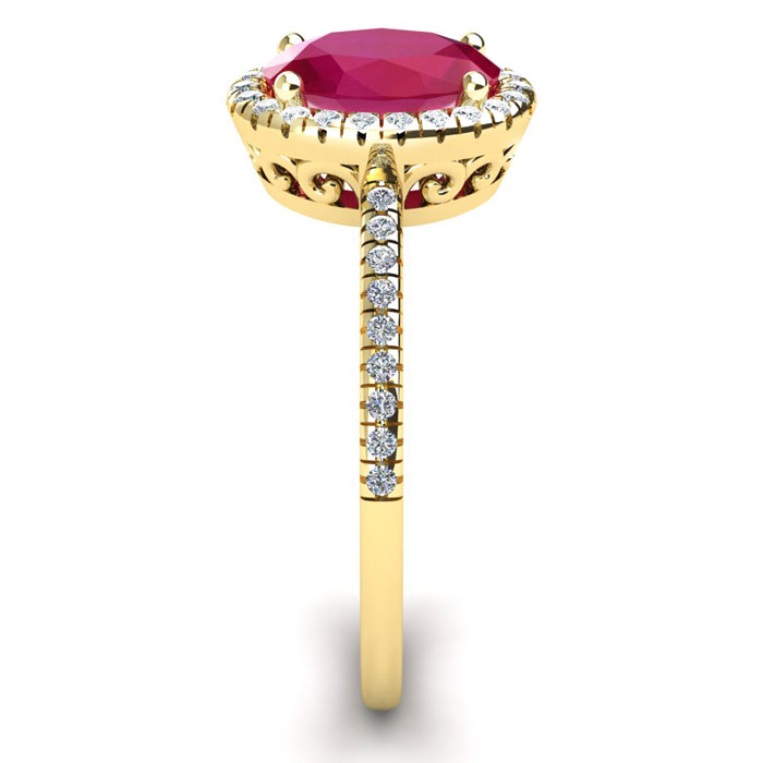 1 3/4 Carat Oval Shape Ruby and Halo Diamond Ring In 14 Karat Yellow Gold