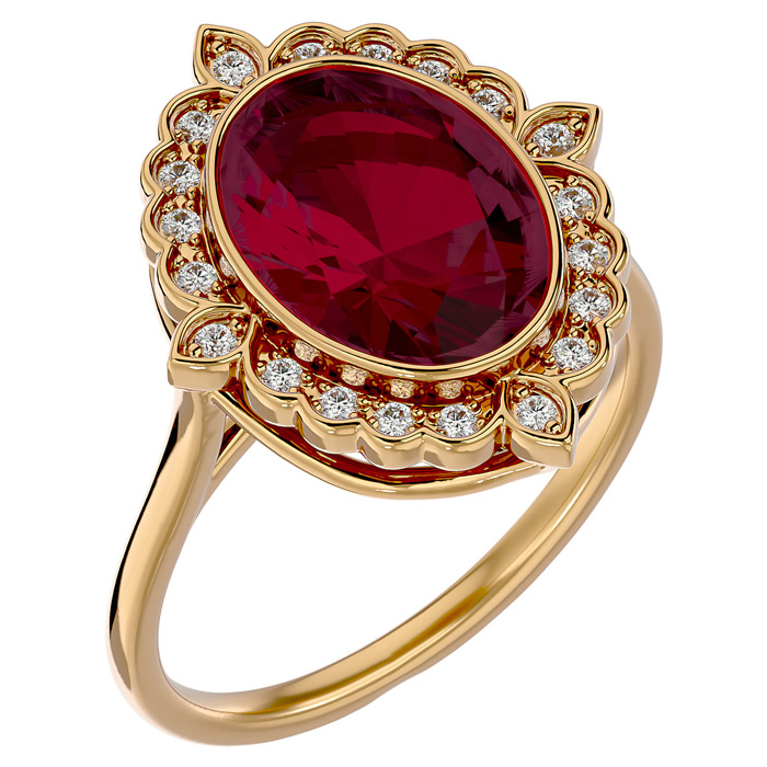 1 3/4 Carat Oval Shape Ruby and Halo Diamond Ring In 14 Karat Yellow Gold