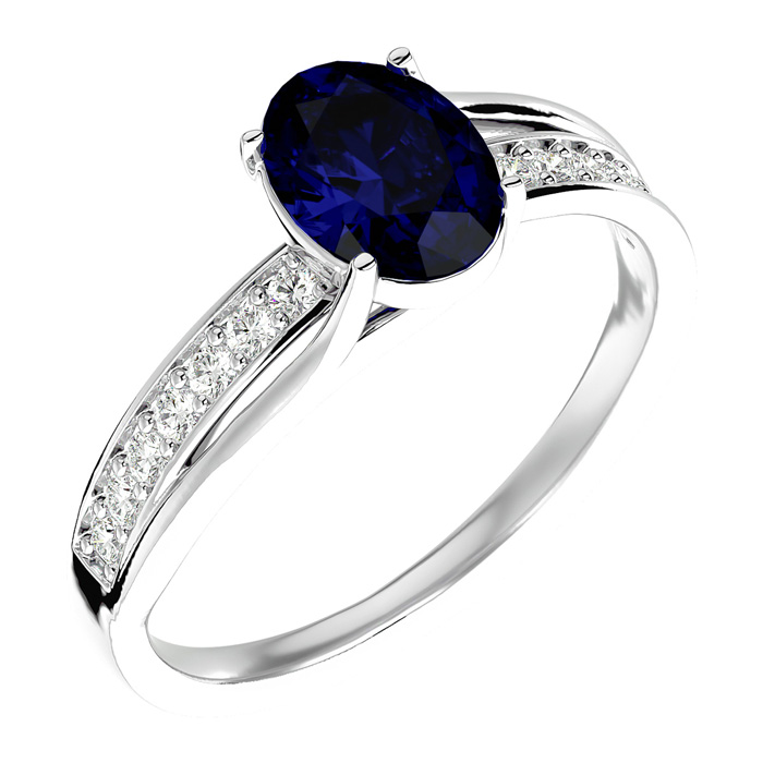 1 3/4 Carat Oval Shape Sapphire and Diamond Ring In 14 Karat White Gold