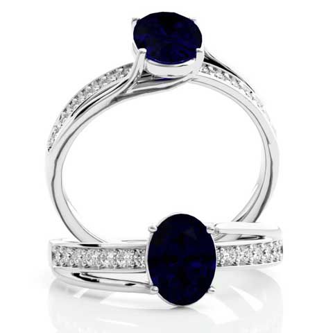 1 3/4 Carat Oval Shape Sapphire and Diamond Ring In 14 Karat White Gold