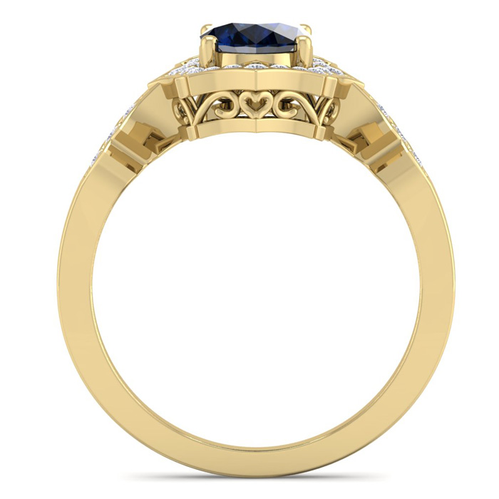 1 3/4 Carat Oval Shape Sapphire and Diamond Ring In 14 Karat Yellow Gold