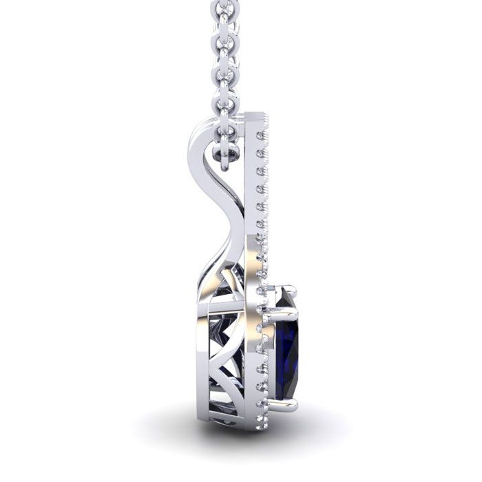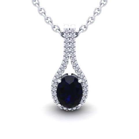 1 3/4 Carat Oval Shape Sapphire and Halo Diamond Necklace In 14 Karat White Gold, 18 Inches