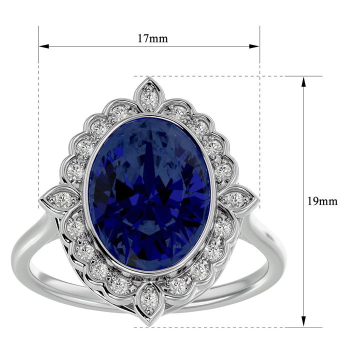 Retrograde Birthstones™ 1 3/4 Carat Oval Shape Sapphire and Halo Diamond Ring In 14 Karat White Gold