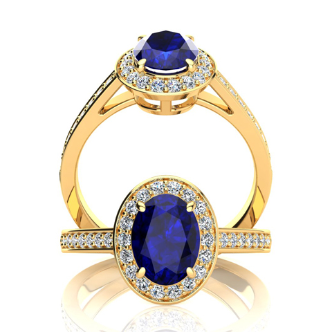 1 3/4 Carat Oval Shape Sapphire and Halo Diamond Ring In 14 Karat Yellow Gold