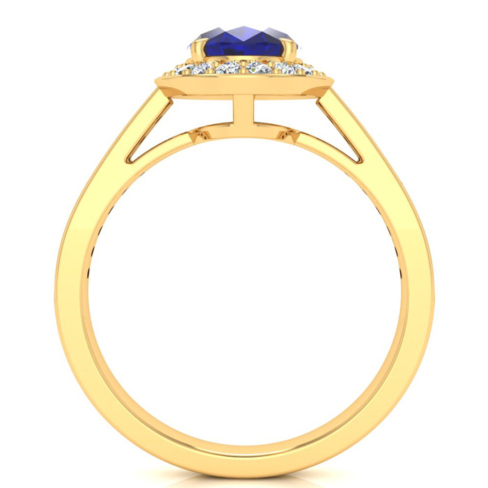 1 3/4 Carat Oval Shape Sapphire and Halo Diamond Ring In 14 Karat Yellow Gold