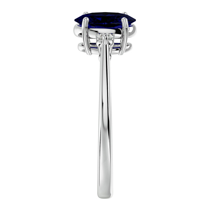 1 3/4 Carat Oval Shape Sapphire and Two Diamond Ring In 14 Karat White Gold