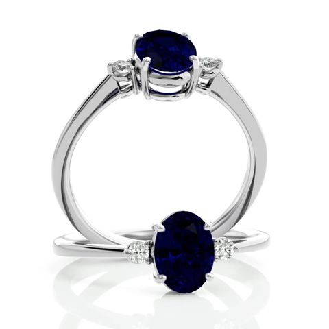1 3/4 Carat Oval Shape Sapphire and Two Diamond Ring In 14 Karat White Gold
