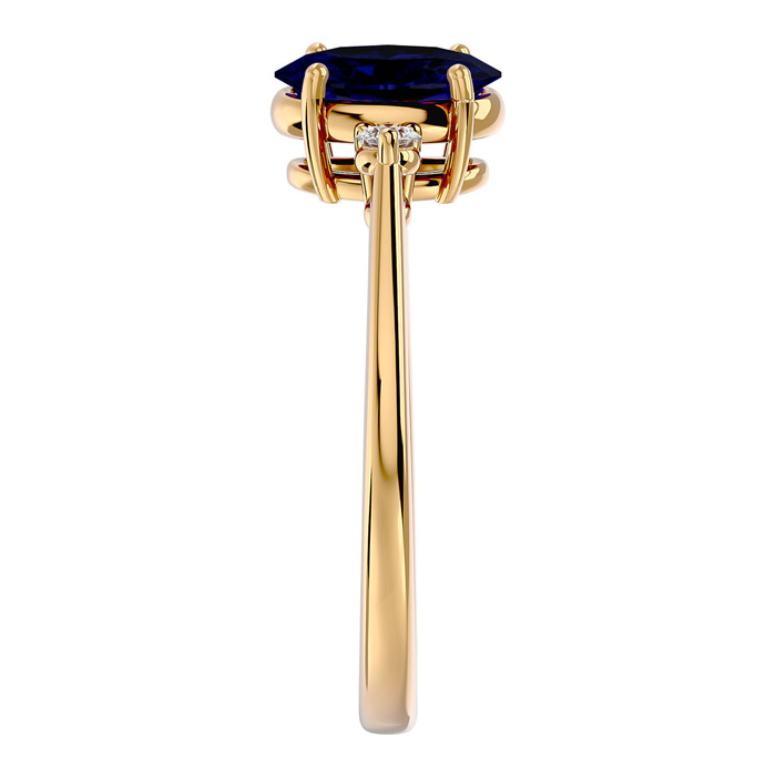 1 3/4 Carat Oval Shape Sapphire and Two Diamond Ring In 14 Karat Yellow Gold