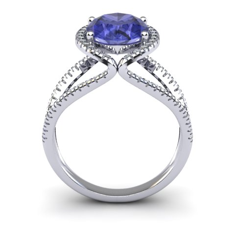 1 3/4 Carat Oval Shape Tanzanite and Halo Diamond Ring In 14 Karat White Gold