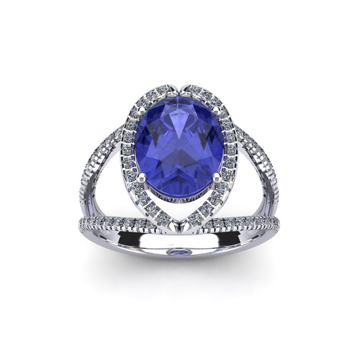 1 3/4 Carat Oval Shape Tanzanite and Halo Diamond Ring In 14 Karat White Gold