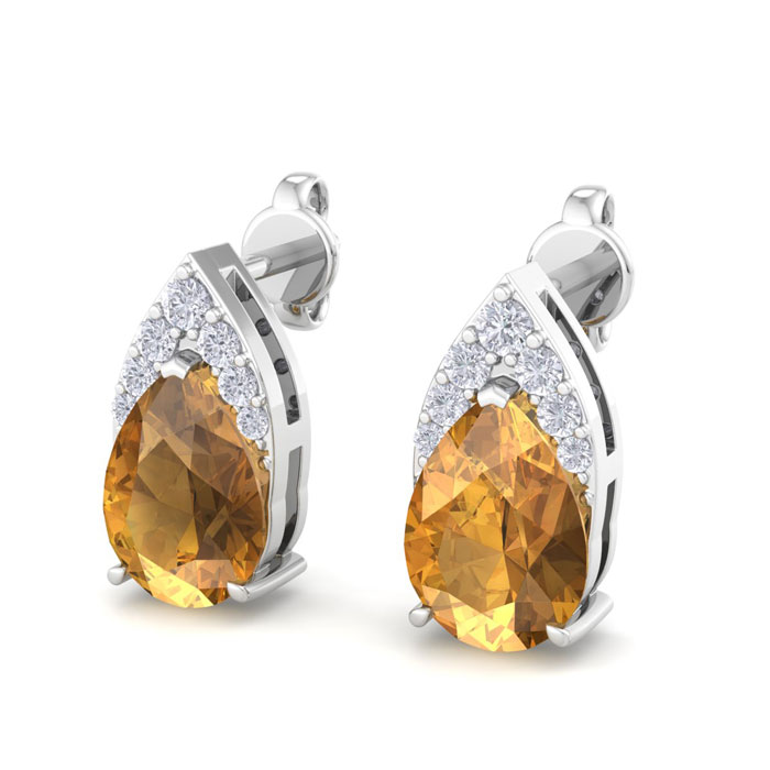 1 3/4 Carat Pear Shape Citrine and Diamond Earrings In 14 Karat White Gold