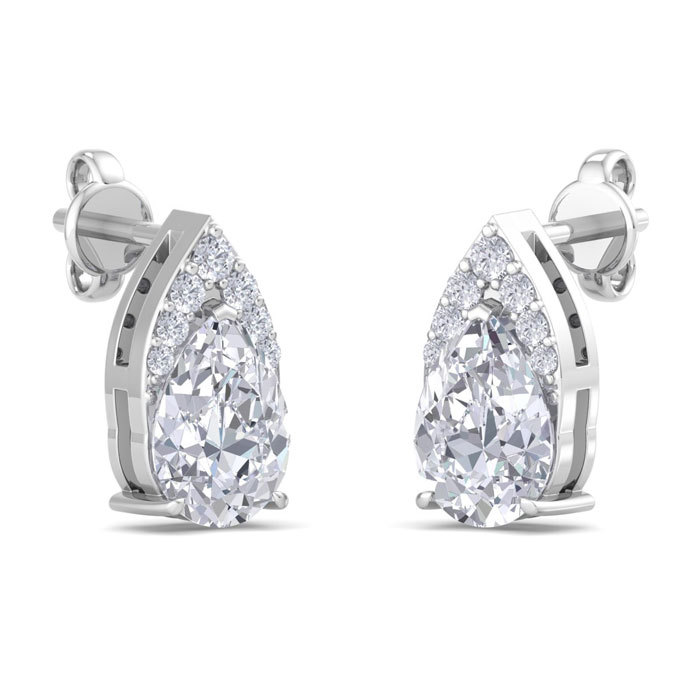 1 3/4 Carat Pear Shape Lab Grown Diamond Earrings In 14 Karat White Gold