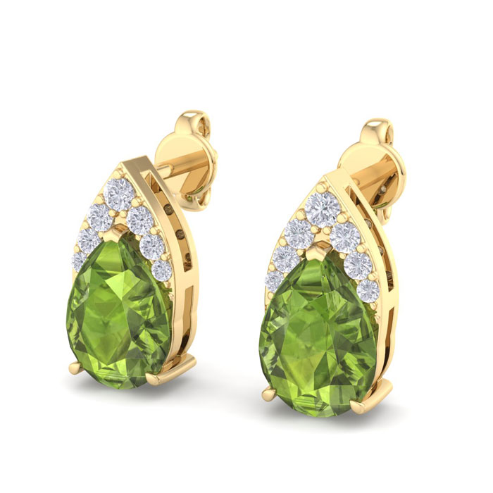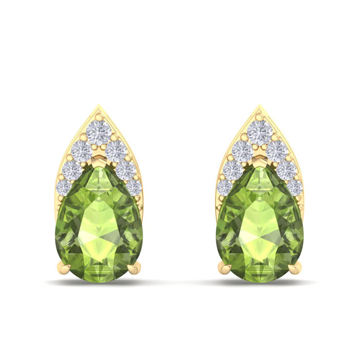 1 3/4 Carat Pear Shape Peridot and Diamond Earrings In 14 Karat Yellow Gold