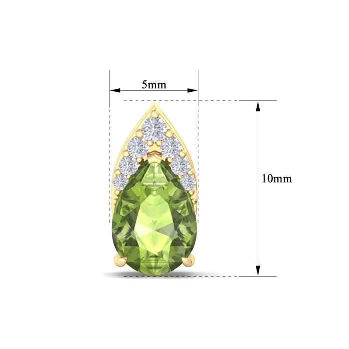 These gemstone earrings feature 2 sparkling pear shape peridot gemstones each weighing approximately 3/4 carats. They are surrounded with a crown of 14 diamonds totaling approximately 1/5 carat. Total carat weight is 1 3/4 carats. Diamond color is I-J, diamond clarity I1-I2. These earrings are in 14 karat yellow gold and have comfortable and secure post with friction backs.
