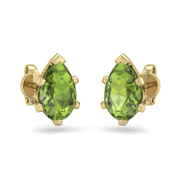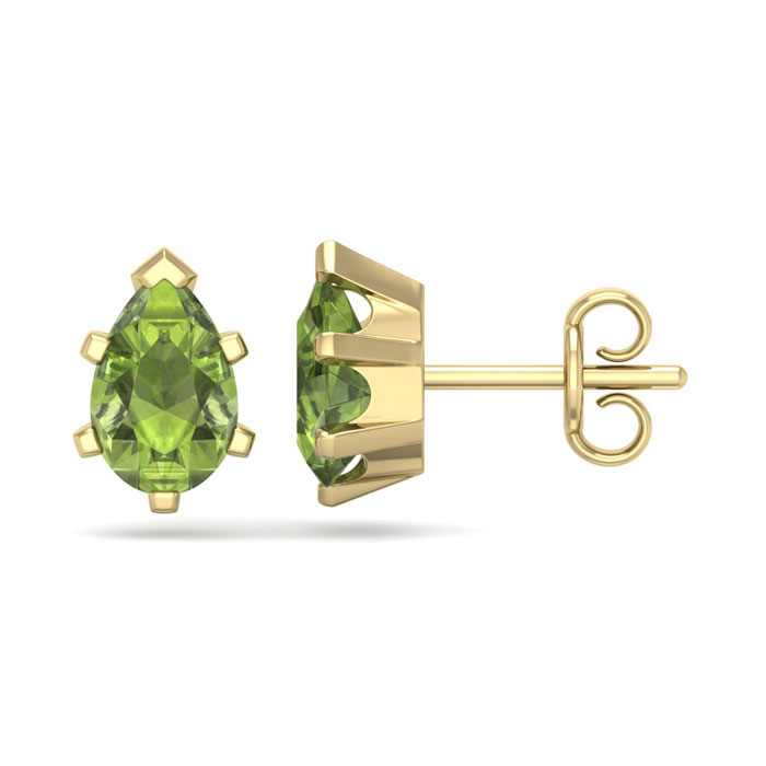 These classic earrings feature two 7x4.5mm pear shape peridot gemstones. Each stone weighs approximately 0.90 carats, for a total carat weight of approximately 1.80 carats. These earrings are in 14 karat yellow gold over sterling silver and have comfortable and secure post with friction backs.