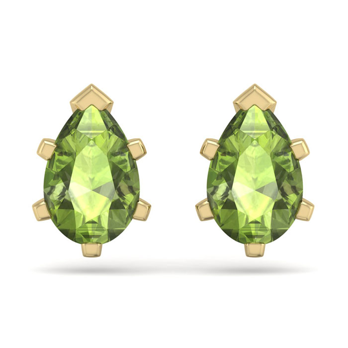 1 3/4 Carat Pear Shape Peridot Stud Earrings In 14K Yellow Gold Over Sterling Silver