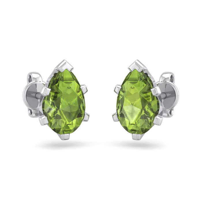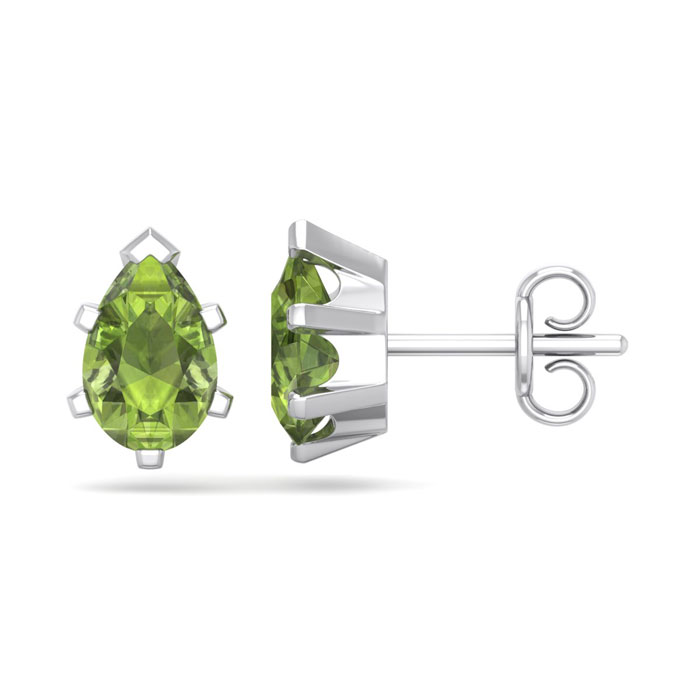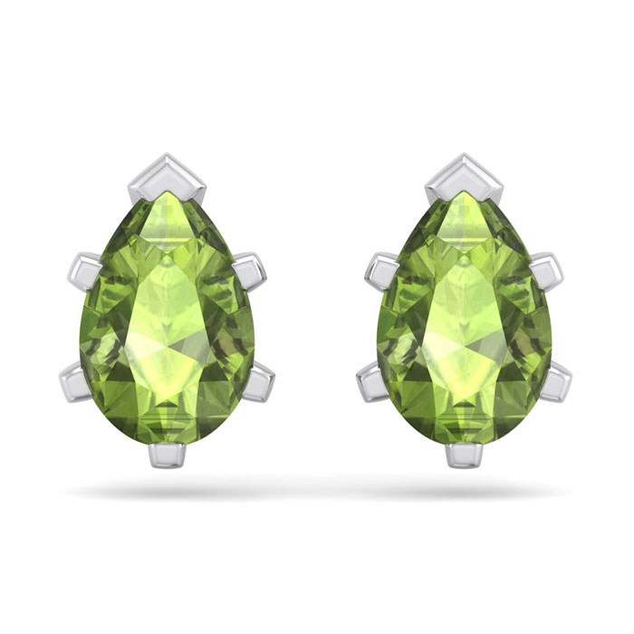 1 3/4 Carat Pear Shape Peridot Stud Earrings In Sterling Silver