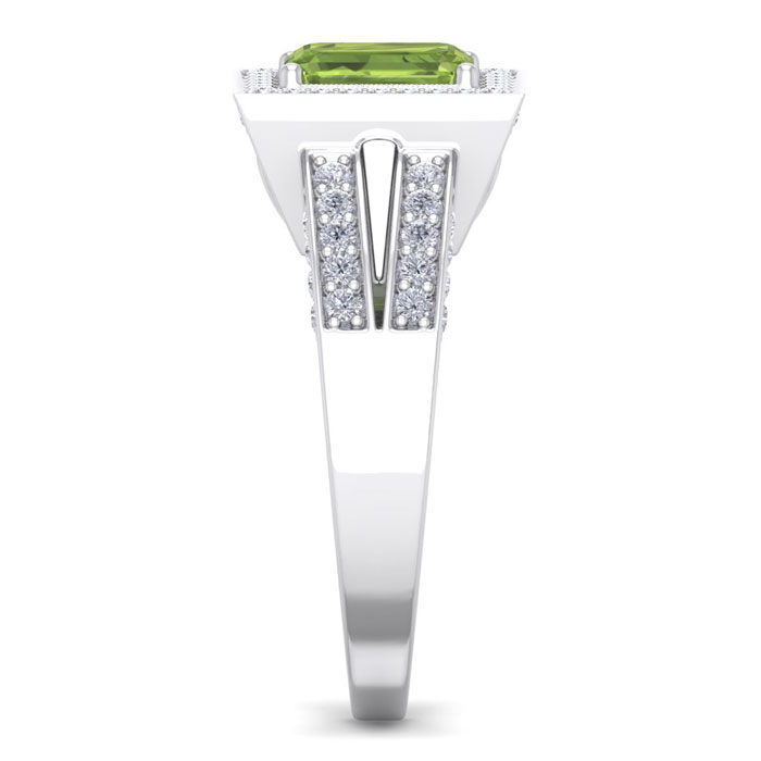1 3/4 Carat Peridot and Halo Diamond Ring In 14 Karat White Gold