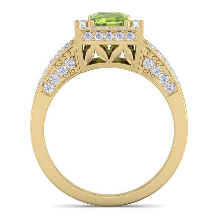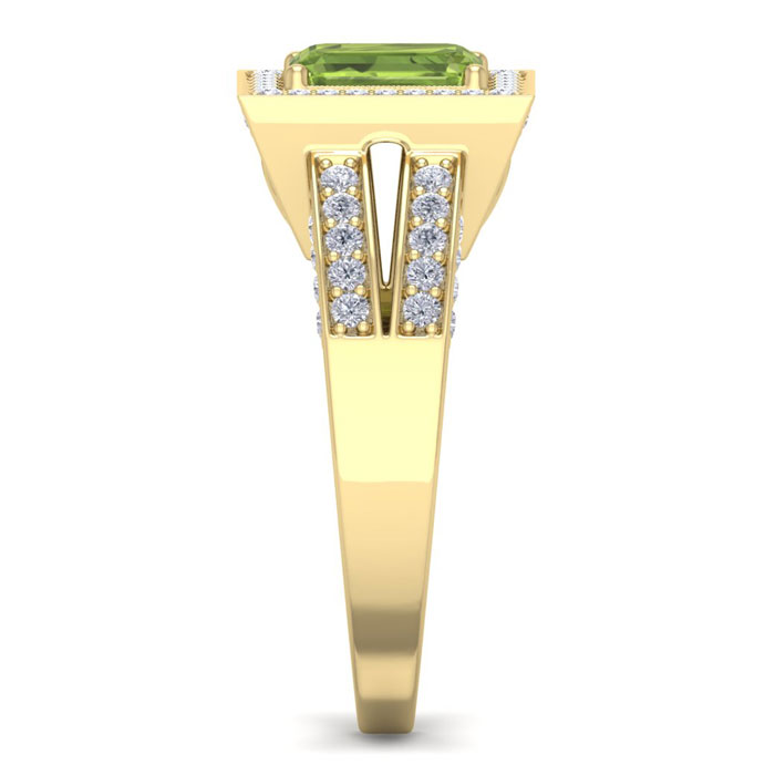 1 3/4 Carat Peridot and Halo Diamond Ring In 14 Karat Yellow Gold