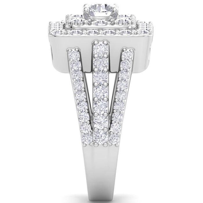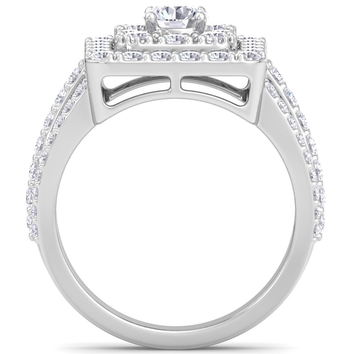 1 3/4 Carat Natural Princess Style Halo Diamond Engagement Ring in 14k White Gold