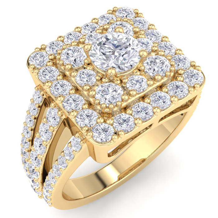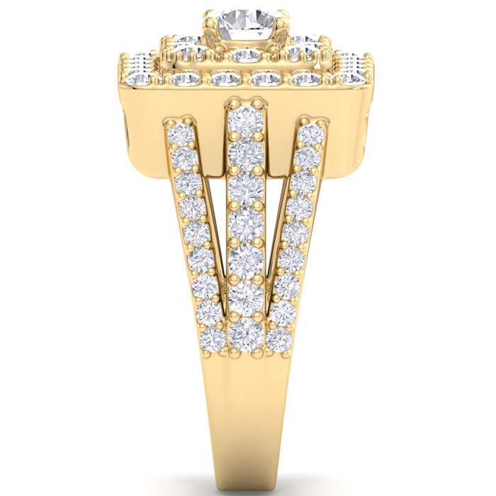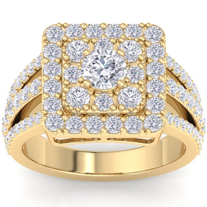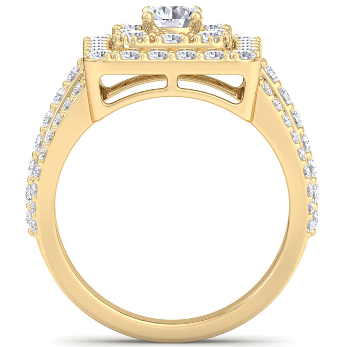 1 3/4 Carat Natural Princess Style Halo Diamond Engagement Ring in 14k Yellow Gold