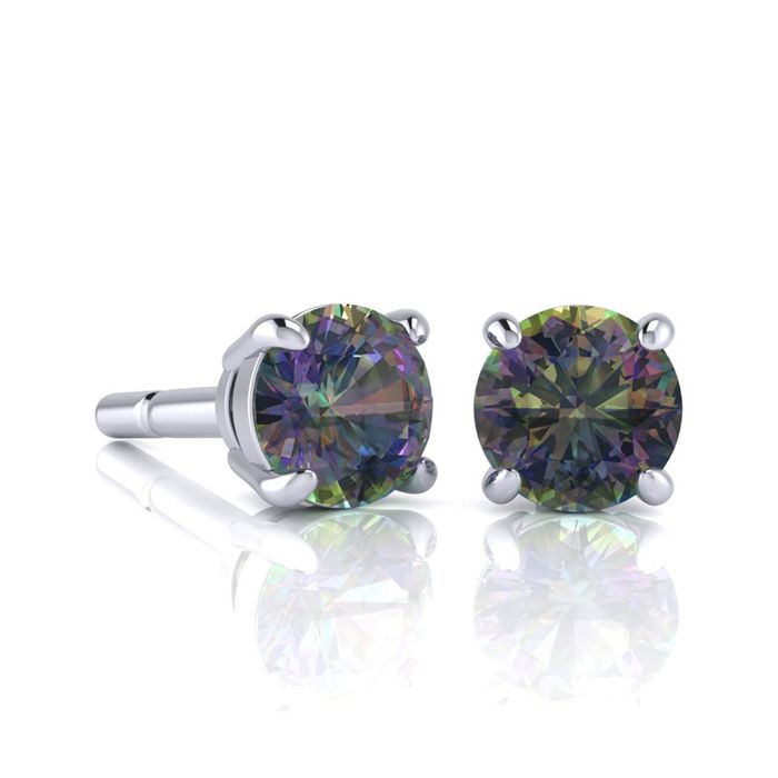 1 3/4 Carat Round Shape Mystic Topaz Stud Earrings In Sterling Silver