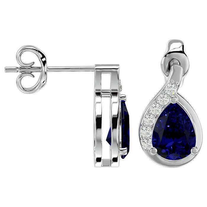 1 3/4 Carat Sapphire and Diamond Pear Shape Stud Earrings In 14 Karat White Gold