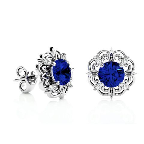 1 3/4 Carat Tanzanite and Diamond Antique Stud Earrings In 14 Karat White Gold
