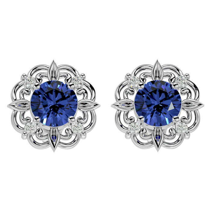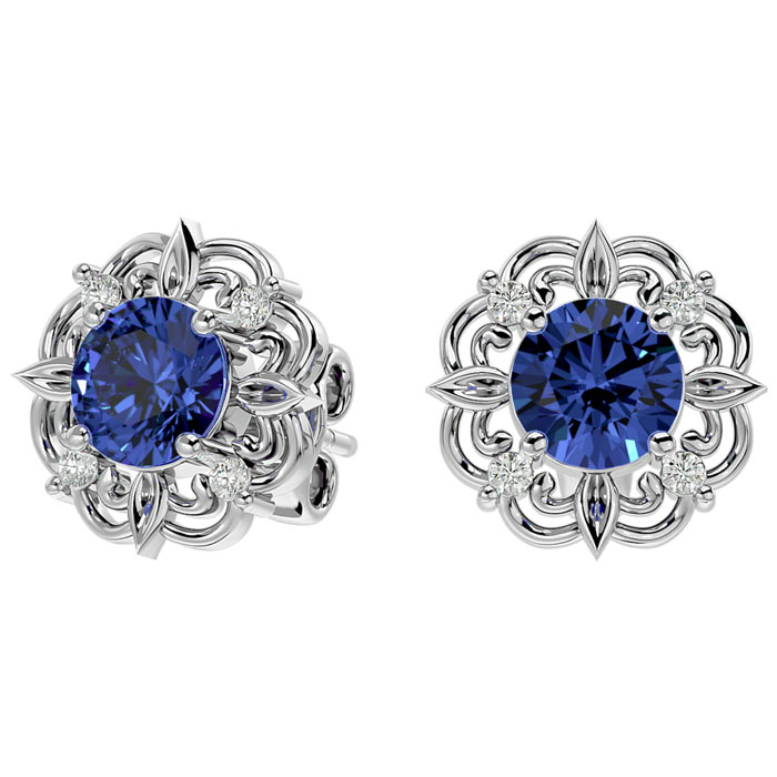 Retrograde Birthstones™ 1 3/4 Carat Tanzanite and Diamond Antique Stud Earrings In 14 Karat White Gold