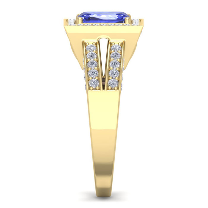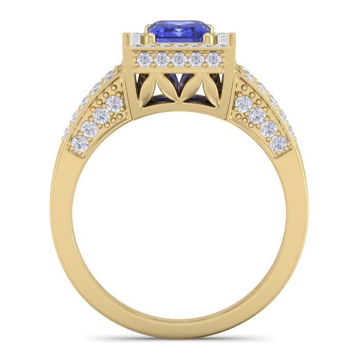 1 3/4 Carat Tanzanite and Halo Diamond Ring In 14 Karat Yellow Gold