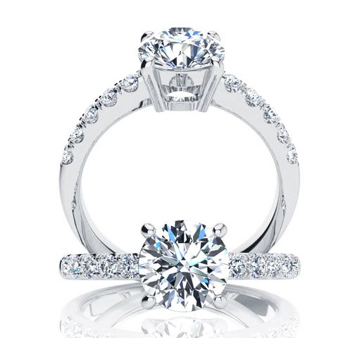 The perfect and most traditional diamond engagement ring for the lady who wants a diamond ring that is always in style. Featuring a round brilliant 1 1/2 carat clarity enhanced solitaire diamond and 10 side diamonds of 3 points each, this ring is 1.80 carats total diamond weight, set in solid 14 karat white gold. Available in ring sizes from 4 to 9.5.